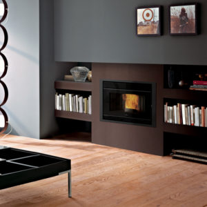 Insert à granulés compact, idéal pour récupérer une vieille cheminée ouverte ou pour une nouvelle installation.